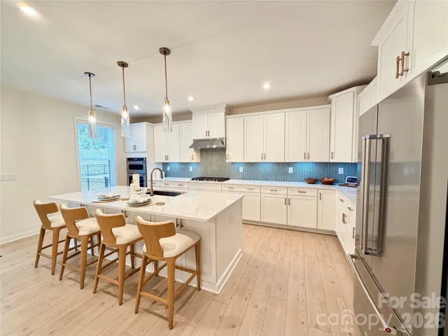 As featured on HGTV. Welcome to your dream home in Griffith Lakes, where refined luxury meets modern convenience. Why wait to build when you can move right into a model-like residence on a premium lot that is newly constructed? This coveted featured 2025 Toll Brothers build has been thoughtfully elevated with over $175k in post-purchase designer upgrades (optional furniture can be purchased), creating an exceptional indoor-outdoor living experience rarely found. Upon entry, natural light fills a spacious flex room—ideal as a home office or easily converted into a fifth bedroom. A fully upgraded custom Kohler powder room features custom quartz countertops, a sleek rectangular sink, and a self-cleaning heated bidet. A custom built-in seating nook with storage, lighting, and power adds both character and functionality. The finished garage is equally impressive, offering epoxy flooring, an insulated door, overhead storage rack, & water softener and filtration system. Just beyond, an additional flexible space is currently configured as a private home gym. At the heart of the home, the open-concept living, dining, and kitchen areas are designed for both everyday comfort and elevated entertaining. The chef’s kitchen is outfitted with soft-close shaker cabinetry with pull-outs, an oversized quartz island with designer pendants, new KitchenAid stainless steel appliances, a gas cooktop with exterior venting, and a deep sink with a Kohler motion-sensor faucet. Step outside to a breathtaking screened lanai and resort-style outdoor oasis. Custom pavers, vertical plant walls, and a manual open/close pergola with integrated drainage, lighting, and power create the ultimate entertaining environment. Lush landscaping is highlighted by architectural uplighting, while a dramatic color-changing LED waterfall with seating wall offers a serene retreat overlooking the 18×30 paved TECO block backyard. Upstairs, a generous loft leads to four bedrooms and three full baths, along with a luxurious laundry suite featuring waterfall quartz countertops, custom cabinetry, a wine cooler, stainless sink, microwave, and additional storage. The primary suite is a private sanctuary with a tray ceiling, blackout drapery, dimmable lighting, and a custom boutique-style closet with LED lighting, adjustable shelving, and soft-close cabinetry. The spa-inspired bath includes dual Kohler vanities, a deep soaking tub with wall-mounted TV, a walk-in shower with dual and rain showerheads plus bench seating, and an additional self-cleaning heated bidet. A refined secondary en-suite bedroom comfortably accommodates a king bed and offers its own Kohler-appointed bath with dual showerheads and walk-in closet. Two additional bedrooms share a beautifully designed bath with dual sinks and a deep tub/shower combination. Throughout the home, luxury finishes abound: ceiling fans, LED lighting, select motorized blinds, smart-home features, all-new quartz surfaces, upgraded faucets and fixtures, rectangular sinks, designer toilets, custom paint, 3-Day blinds, custom drapery, and enhanced curb appeal from front to back. This meticulously curated residence is truly one of a kind. Enjoy life in Griffith Lakes, a brand-new, walkable master-planned community offering lakes, clubhouse, tennis and racquetball courts, fitness center, pool, spa, and lawn care included in the HOA. The home includes the peace of mind of a continuing 1, 2, and 10-year builder warranty. Perfectly positioned with easy access to I-77, I-85, and I-485, this premier neighborhood is just minutes from Uptown Charlotte, UNC Research Park, UNC Charlotte, and the natural beauty of Lake Norman—surrounded by shopping, dining, and entertainment curated for those who value convenience without compromise. Ask for the video.
