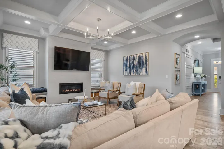 As the original model, this home is filled with upgrades and custom details throughout. One of the most striking staircases in the neighborhood makes an immediate impression, while extensive built-ins and thoughtful design, coffered ceiling, and elements elevate all the living spaces. The upgraded kitchen was designed for both beauty and function, cabinetry to the ceiling, lit soffits, drawer microwave, double oven, gas appliances, and complemented by a butler’s pantry featuring a wet bar and wine fridge, along with a tucked-away planning center just behind the kitchen—perfect for a home office, organization hub, or homework space.