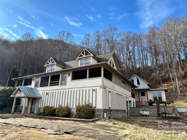 This knoll-top Contemporary Cape Cod home sits on a 1.59 acre lot with east-facing year round mountain views. The timeless design and functional layout provide a foundation with considerable potential. This three-bedroom, four-and-a-half-bathroom home presents an exceptional investment opportunity with stunning mountain panorama views and sunrise vistas. The covered mountain-view porch provides an ideal outdoor retreat, while mature evergreen borders to the rear and a private patio fire pit area enhance the property's natural appeal. Other features include an outdoor kitchen, sunroom, unique enclosed grill room, unfinished detached guest house with loft and its own full bathroom. Partially finished basement has a wet bar/rec room, mudroom, bonus room, playroom, laundry, full bathroom and workshop space. There is an outdoor shower and a private enclosed firepit patio area. The home features mountain view windows and a sun-filled 2 story living room that showcase the seasonal foliage display throughout the year. Located close to Lake Junaluska Golf Course, with convenient access to Lake Junaluska Recreation Area and Maggie Valley Festival Grounds, this property offers both recreational amenities and location advantages. With solid structural foundation and classic architectural elements, this home provides an excellent canvas for transformation. The combination of natural beauty, recreational access, and generous bathroom count establishes strong potential for a successful renovation project with substantial upside value for discerning investors. This is a Fannie Mae HomePath property.