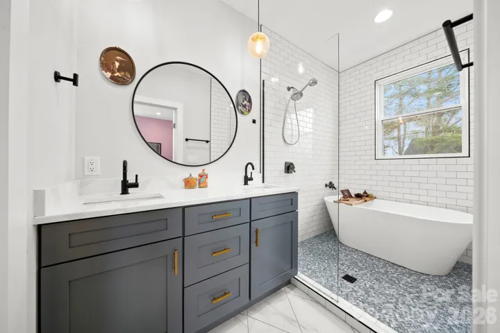 This home has it all. Excellent West Asheville location, remarkable floor plan, intelligent and fine finishes, vibrant personality, comfortable outdoor space, and a wonderful view of downtown. Wake each morning as the programmable shade opens to big blue sky as the sun rises from the east, revealing views of the Arras building and downtown Asheville from the primary suite. Enjoy two large walk-in closets and luxury ensuite with freestanding soaking tub, tiled shower and dual vanities. Down the hall there are two additional bedrooms, another full bathroom, laundry room and an oversized linen closet. On the main level, a designer kitchen boasts abundant storage with deep drawers, coffee bar, walkthrough pantry with kegerator, and premium appliances. Enjoy the warm glow and cozy comfort of the gas fireplace while hosting friends and family during the cooler months and open the back door to the fully screened-in back deck when the weather is nice. A fourth bedroom, full bathroom, and quiet sitting area finish off the first level, making this one of the most versatile and functional floor plans ever designed. That functionality is paired perfectly with efficient systems such as an on-demand, tankless water heater, and high-efficiency heat-pump. Fiber-cement siding and 40 year metal roof promise many years of low maintenance living. Come see how good life can be at 21 Boyd Ave. Open House 4/12/2026 from 1-3pm.