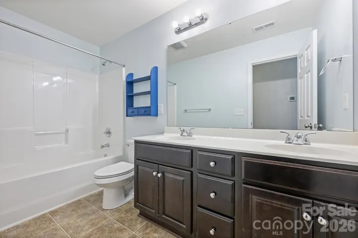 A main-level bedroom and full bath provide flexibility for guests, work-from-home, or multigenerational living. Upstairs, the spacious owner’s suite feels like a true retreat, with a large walk-in closet, dual vanities, and a separate garden tub and shower. Three additional bedrooms, a shared bath with dual sinks, and a generous ~320 SF loft give everyone room to spread out.