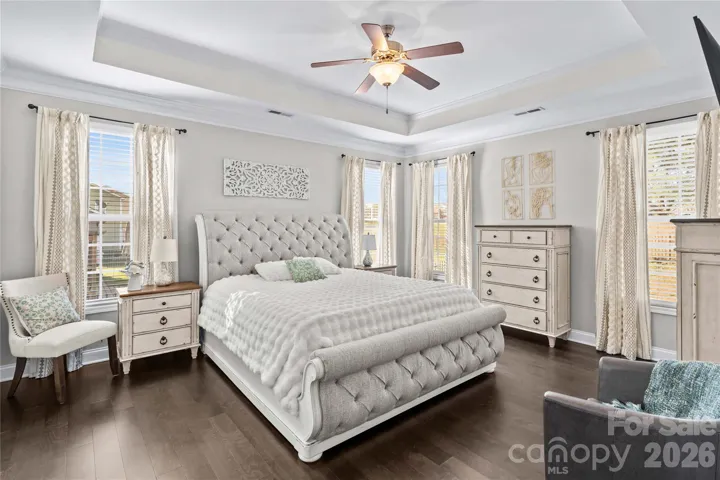 Experience resort-style living every day in the highly desirable Larkin Golf Community. This is more than a home—it's a stunning 5-bedroom, 3.5-bathroom retreat where everyday convenience meets luxury. Your private sanctuary awaits in the fenced backyard oasis, complete with a hot tub and breathtaking sunset views overlooking Hole#1. Enjoy a post-golf cocktail or skip the cooking entirely with the convenience of the on-site clubhouse restaurant, all just steps from your front door. Inside, the home is an entertainer’s dream. The open floor plan is immediately striking, enhanced by vaulted ceilings that make the space live much larger, engineered hardwoods throughout main-level living area and beautiful transom windows that maximize the natural light. The gourmet kitchen, featuring a convenient breakfast bar, flows seamlessly into the spacious living and dining areas, complete with elegant built-ins and a cozy gas-log fireplace. The main level offers a private owner's suite with a spa-like bath and a walk-in closet recently updated with custom built-ins by Closets by Design. The main level also features two additional bedrooms with recently added new LVP flooring and a full bath. Upstairs, two more versatile rooms also featuring new LVP and another full bath await - perfect for a dedicated home office, guest suite, or a billiards/media room. Updates from the current owner are the new LVP as well as three custom closets - one in main-level primary, one in bonus/rec room and one in the coat closet (completed by Closets By Design). Come see the perfect blend of community, luxury, and modern updates today! Back on market due to no fault of seller. Previous buyer had a family emergency, thus reason for termination. No Inspections performed - now is your opportunity.