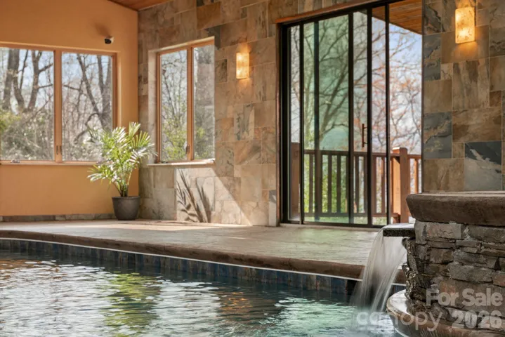 If you’ve been searching for a mountain home that feels like a true private retreat, close to everything yet completely removed, this one delivers. Just 10 minutes from downtown Brevard and 25 minutes to Dupont State Forest, the property strikes a rare balance of convenience and seclusion. From the moment you arrive and step inside, sweeping year-round mountain views draw you in, carrying your gaze through the home with breathtaking stillness. Mornings begin in the primary suite, where you wake to front-row scenery, and just steps away, a private staircase leads to your own indoor oasis. Evening swims in the heated pool or a quiet soak in the spa feel effortless and completely private. The heart of the home invites both relaxation and connection. Sunlight fills the sunroom, the wet bar hints at effortless entertaining, and thoughtful touches like the laundry near the primary suite make daily life simple. Granite countertops, hardwood floors, and freshly painted interiors enhance the calm and warmth throughout. Downstairs, the retreat deepens with a sauna, a recreation room with a fireplace, and a second bar in the garage, creating the perfect setting for relaxing, gathering, or indulging in quiet escape. The heated indoor pool and spa serve as a showpiece, complemented by striking exposed copper-finished ductwork that adds bold character. Outside, the story continues across expansive decks that invite you to linger over the views, while a covered breezeway with exposed beams and antler chandeliers creates a memorable welcome. Every detail, from partial copper gutters to custom finishes, reflects the care and craftsmanship infused throughout the home. And finally, a true renovated caboose, a one-of-a-kind feature that captures the imagination. Perfect as a guest space, private studio, or even a unique income opportunity, it’s an unexpected gem all on it's own. More than a home, it’s a mountain sanctuary where every view, every detail, and every moment invites you to escape.