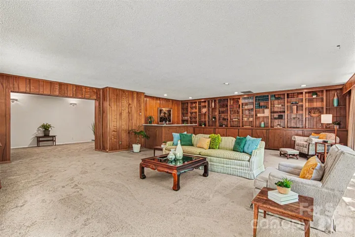 Step outside and unwind to the peaceful sounds of nature, or gather with friends and family in the spacious family room—complete with a built-in bar, perfect for entertaining. Floor-to-ceiling bookcases add character and make this space a true retreat for any book lover.