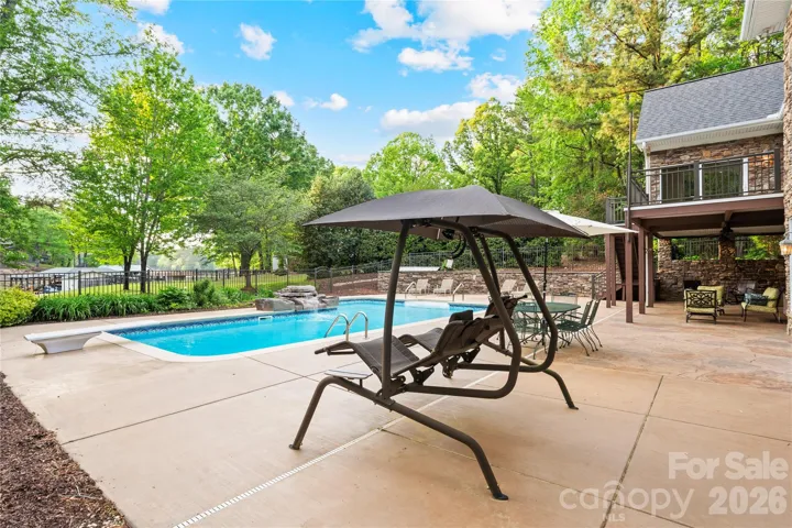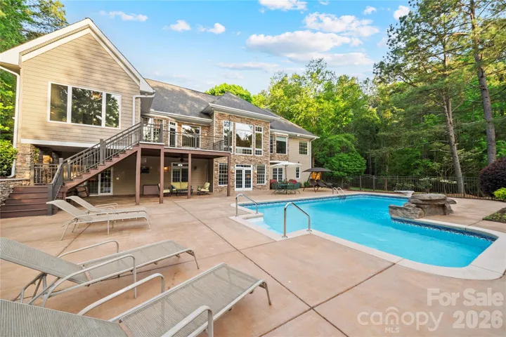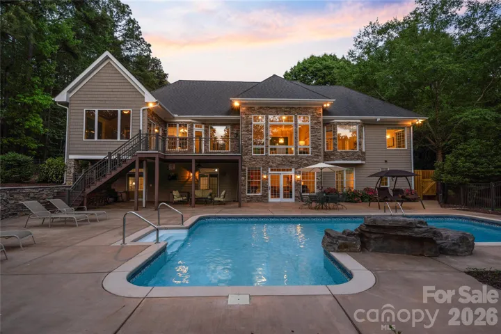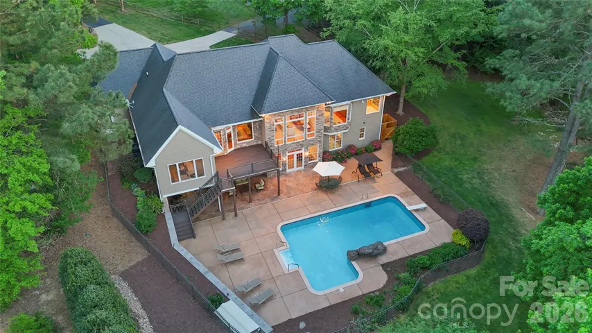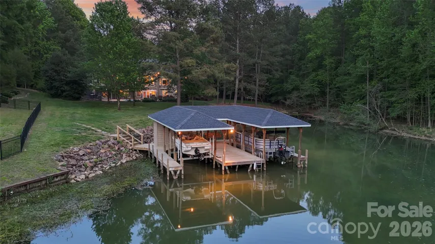 Outdoors, the property transforms into a true lakeside sanctuary. A stunning saltwater in-ground pool anchors the backyard, creating a tranquil setting for sun-drenched afternoons and relaxed evenings under the Carolina sky. Expansive decking and covered porches provide seamless indoor-outdoor living, inviting you to gather, dine, and take in the gentle water views at every turn. Your private boathouse with lifts offers effortless access to the lake, where days can be spent boating, fishing, or simply enjoying the calm of the water. Surrounded by mature trees, open pasture, and additional outbuildings, the property offers both privacy and endless possibilities.