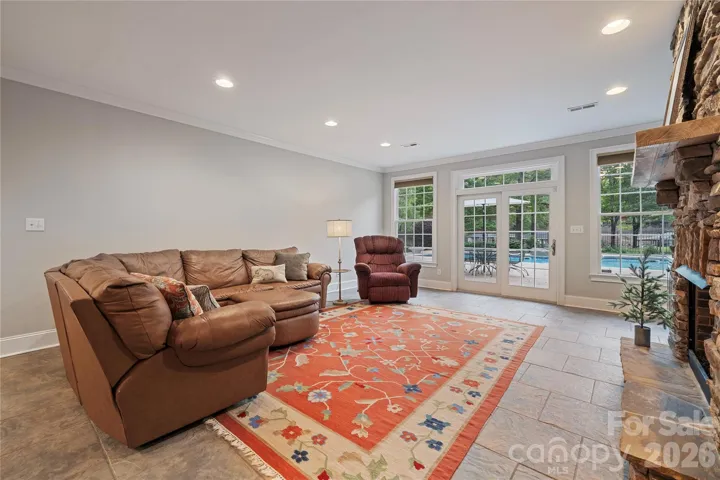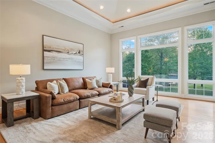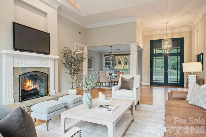 The main level unfolds with warmth and understated sophistication, as natural light pours into expansive living spaces and fireplaces create an inviting ambiance from the moment you enter. At the heart of the home, a beautifully appointed kitchen features a generous island, custom cabinetry, breakfast bar, and premium appliances—perfectly suited for everything from intimate dinners to effortless entertaining. Just beyond, the main-level primary suite serves as a serene retreat with a spa-inspired bath and peaceful views that invite you to unwind. A sunroom, private office, and additional gathering spaces complete the main level, seamlessly blending comfort and function with timeless style.