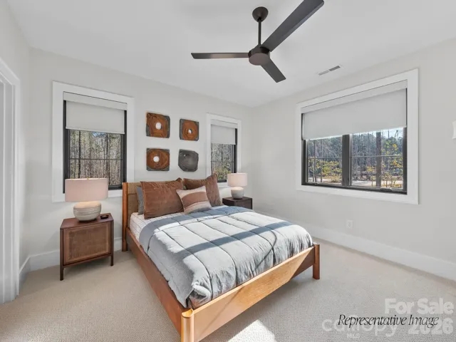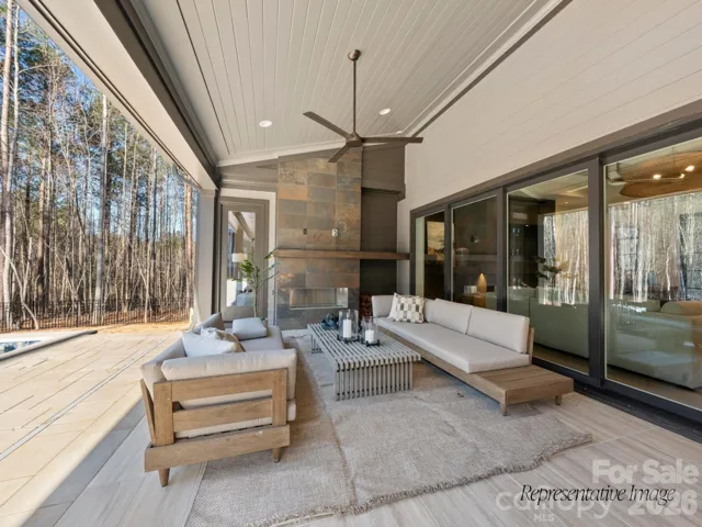Currently under construction, this custom Lanier by AR Homes sits on a private 0.76-acre homesite in Davidson's exclusive Copper Pine community. The modern Prairie-style design offers 5 bedrooms, 5 full baths, and a dedicated half bath across 5,069 sq ft of living space (6,887 sq ft including porches and a 4-car garage).