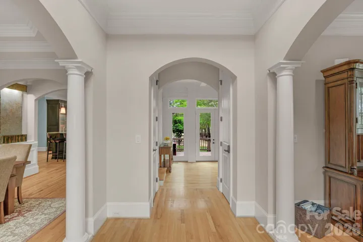 Welcome to 4017 Beechwood Spring Lane, a stunning two-story estate perched at the highest point of the prestigious gated community of Reflection Pointe. This 4-bedroom home sits on a sprawling 1.14-acre lot, offering rare lake views from both the front and the expansive, fenced backyard. The grounds provide a perfect canvas for a growing family, featuring a large, level lawn with ample space for a future in-ground pool. From the moment you enter the two-story foyer, the home impresses with elegant details and modern conveniences, including a comprehensive whole-home speaker system that sets the mood for every room. The main level flows effortlessly from the formal dining room with tiered ceilings and French doors to a sun-drenched study that captures tranquil water views.