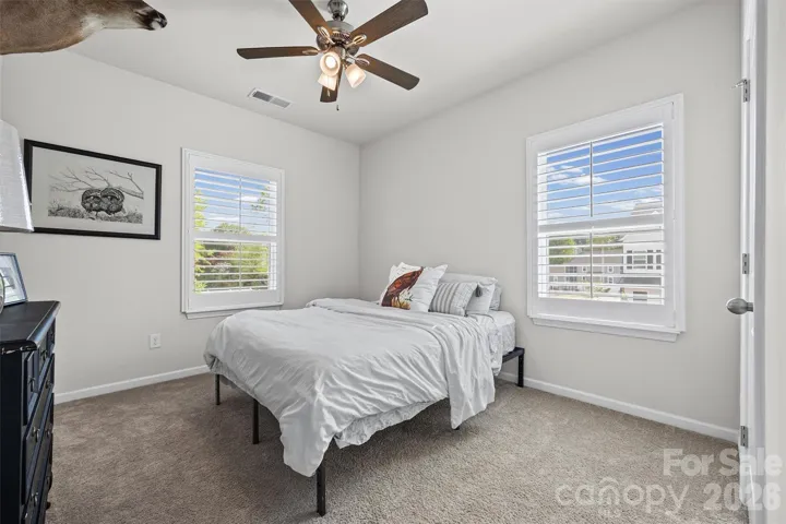 Welcome to this beautifully maintained end-unit townhome tucked away in one of the most desirable pockets of the Auden community—where privacy, natural light, and thoughtful design come together effortlessly. Positioned at the edge of the neighborhood, this home offers a rare sense of quiet and seclusion, with additional windows that flood the space with natural light and create an airy, open feel throughout. Enjoy peaceful surroundings while still being just moments from the best of Rock Hill’s growing shopping, dining, and everyday conveniences. Inside, the open-concept layout is both functional and inviting perfect for everyday living and entertaining. The spacious kitchen features granite countertops, stainless steel appliances, and a seamless flow into the main living area. Elegant plantation shutters throughout add warmth, charm, and a timeless designer touch.