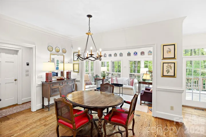 Gorgeous custom brick home set on a rare, picturesque .90-acre lot in sought-after Carmel Estates West, in close proximity to the south course at Carmel Country Club! This one-owner residence has been impeccably maintained and offers exceptional privacy, with lush, mature landscaping and charming garden spaces. Offering 4 bedrooms, 2.5 baths, and 3,600+ square feet, the home blends classic character with comfortable living. The main level features beautiful hardwoods, formal dining, and a spacious family room with built-ins, gas fireplace, and wet bar. The light-filled sunroom and expansive rear deck overlook the sprawling, private backyard—perfect for entertaining or everyday enjoyment. The kitchen includes an abundance of white cabinetry, granite countertops, Thermador appliances, walk-in pantry and a sunny breakfast area. Main-level primary suite with walk-in closet and spa-like bath with soaking tub. Upstairs offers three spacious bedrooms and large bonus room. Ample storage in the walk-in attic or attached 2-car garage. A truly special property with unmatched outdoor space and privacy, just minutes from Carmel Country Club, Charlotte Country Day, and all that south Charlotte has to offer!