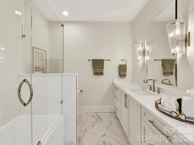 Discover sophisticated, low-maintenance living in this exceptional Myers Park luxury townhome, perfectly positioned just steps from the Greenway, Park Road Shopping Center, dining, and everyday conveniences. Thoughtfully designed across multiple levels, the home features a private lower-level guest suite with a full bath—ideal for visitors or flexible living. The main living areas flow effortlessly, offering both comfort and style. Featuring gourmet kitchen with KitchenAid appliances including 36" gas range with custom hood, pot filler, built-in refrigerator, dishwasher & Sharp drawer microwave. Huge island, perfect for entertaining. Open floor plan features dining area and family room with access to front covered balcony. The upper level is a true retreat, highlighted by a luxurious primary suite with a dual-sink vanity and walk-in shower featuring a rain shower head. An additional bedroom with ensuite bath and a conveniently located laundry room with cabinetry and sink complete this level. On the Upper level, an incredible private office with its own half bath is paired with a stunning entertaining space, complete with a custom bar, sink, ice maker, and two-drawer refrigerator. This level opens directly to the rooftop deck, creating the ultimate indoor-outdoor experience. Perfect for entertaining or unwinding in style. A 2-car garage with epoxy floor and wall slat storage, elevated finishes, and an unbeatable walkable location, this Myers Park residence offers a rare blend of luxury, functionality, and lifestyle.