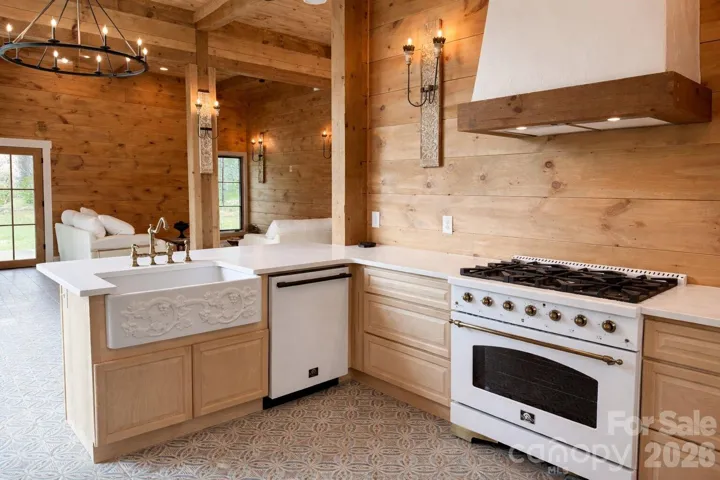 Just beyond the barn residence stands an exquisite stacked-stone Italian-style villa, built in 2021, it is infused with authentic Mediterranean charm. Imported Italian clay tile roofs crown the structure, while inside, reclaimed French hardwood floors, elegant French chateau light fixtures, soaring cathedral ceilings with hand-hewn timber beams, and a dramatic two-story stone fireplace create an atmosphere of understated opulence and warm rustic elegance. Expansive windows frame breathtaking pasture and mountain vistas, flooding the open living space with natural light. Step outside to savor the views from the ground-level portico or the second-story balcony. A covered patio with an outdoor fireplace and ample seating invites al fresco entertaining, while a sizable rooftop patio offers elevated overlooks of the surrounding bluffs and countryside.