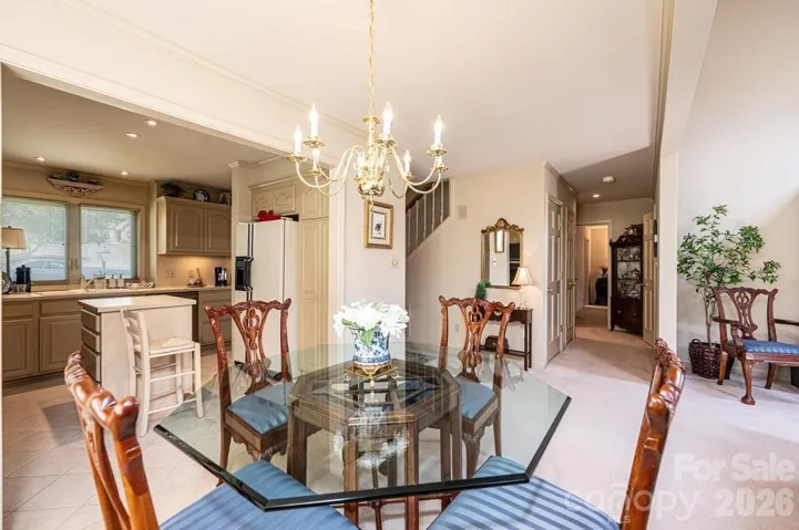 Well-loved and maintained! This end unit townhome overlooks the 11th fairway of the Championship Jackson Course at Rock Barn Country Club and Spa in Conover, NC. Have a front row seat to one of Golf Digest's annual "Best Place to Play" award recipients. The back deck is a great place to gather and enjoy the outdoors. Once inside you'll appreciate the large windows, the sky lights and the openness of the living area! Very inviting, with a natural flow. Enjoy easy living with the primary bedroom, living, dining, laundry, sunroom, kitchen, garage - all on the main level! Upstairs you'll find two guest bedrooms, a full bath, nice closet spaces, and a fun sitting area with bookshelves that overlook the great room! Rock Barn Country Club and Spa is a destination spot. Known for its two championship golf courses, you can also enjoy tennis, pickleball, dining and the award-winning spa. Golf cart friendly neighborhood! Beautifully landscaped entrance! A true pleasure to come home to! Come take a look!