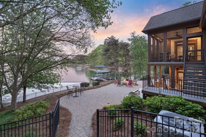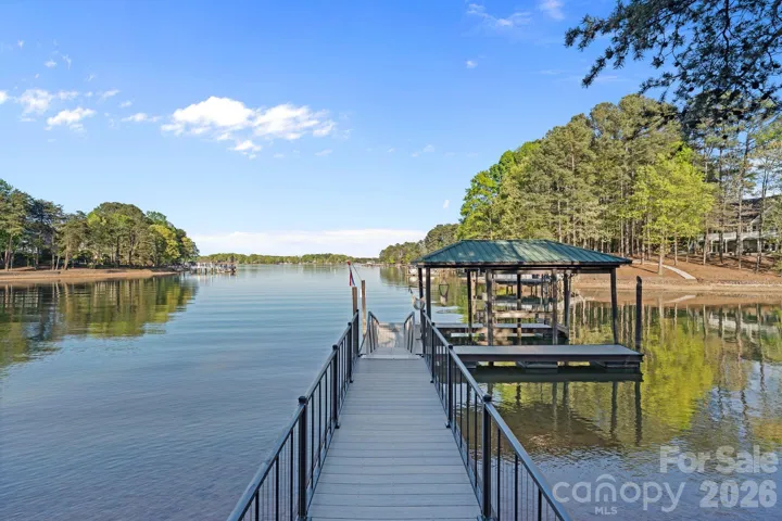 The gently sloping, professionally landscaped yard leads to a private waterfront oasis, complete with an updated composite dock, covered structure, and high-capacity boat lift—making lake access effortless and immediate.