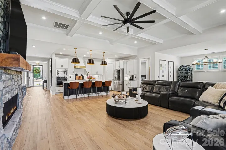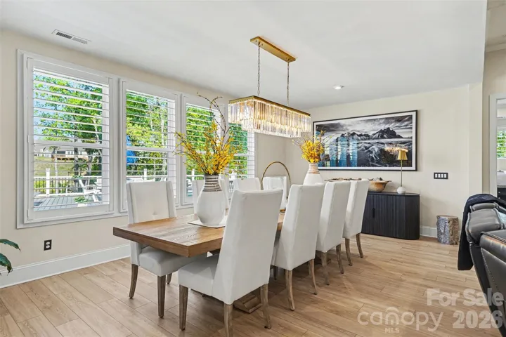 Welcome to lake living at its finest at 8027 Longwaters Court in York, South Carolina, located in the highly desirable, gated 55+ community of Gentry at Handsmill on Lake Wylie. Nestled on a larger lot in a serene cul-de-sac, this single-story home offers peaceful lake views and a lifestyle centered around relaxation, recreation, and low-maintenance living. Residents enjoy access to two marinas, along with a nearby boat launch and a boat slip just steps from the home, as well as HOA-maintained lawn care for effortless living. This exceptional 3-bedroom, 3-bath residence features a 3-car garage and more than $100,000 in Design Center selections, along with extensive structural and system upgrades throughout the popular Mulberry floor plan. Designed for elevated living, the open-concept layout showcases luxury EVP flooring in French Oak tones and a gourmet kitchen with quartz countertops, a custom designer range hood, and a walk-in pantry. A dramatic floor-to-ceiling stone gas fireplace anchors the main living area, complemented by refined details such as a coffered tray ceiling and upgraded designer lighting. The extended living room and sunroom enhance natural light and everyday comfort, creating seamless spaces for both relaxing and entertaining. The fenced backyard features an expansive deck overlooking Lake Wylie, making it perfect for morning coffee or evening gatherings. The owner’s suite offers a spa-inspired bath with a deluxe walk-in shower and a custom-designed luxury closet. Secondary baths are thoughtfully upgraded, and the home is equipped with advanced electrical and smart home enhancements, including expanded Cat 6 data infrastructure, floor outlets, under-cabinet lighting, and full AV prewiring, making it ideal for today’s home office needs. Additional highlights include permanent exterior holiday lighting with more than 1,000 customizable patterns, offering effortless, year-round ambiance. Community amenities include a clubhouse with fitness center, swimming pool, splash pad, catering services, and an event center currently being renovated to further enhance future gatherings and activities. More than a home, it’s a luxurious Lake Wylie lifestyle, where comfort, connection, and elevated design come together.