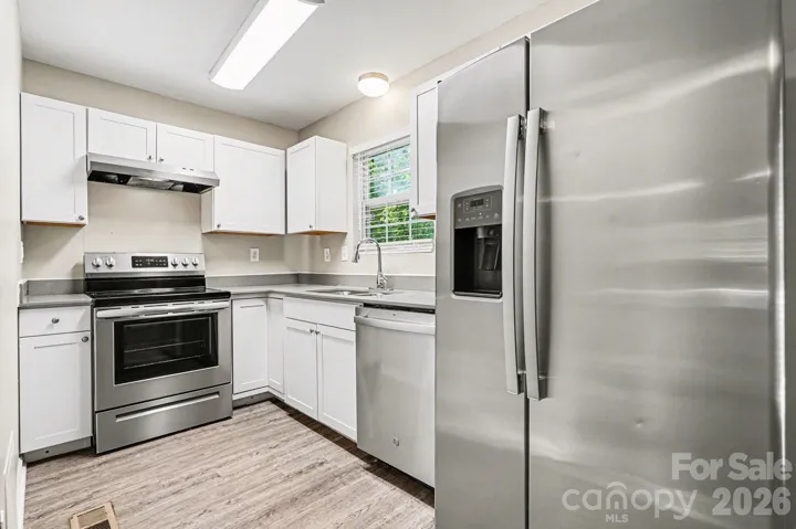 This four-bedroom, 2.5-bathroom home is located in a quiet part of Charlotte. The home features a classic and functional layout designed to accommodate a variety of lifestyles. The kitchen is equipped with durable Formica countertops and stainless-steel appliances, providing a practical space for meal preparation.