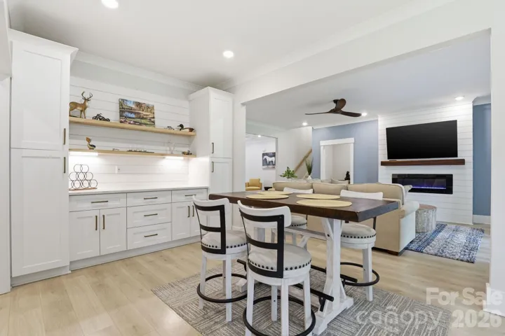 Enjoy your morning coffee on the covered front porch with peaceful water views, or unwind in tranquil settings on the covered back deck. Inside, this spacious home features an open-concept floor plan ideal for both everyday living and entertaining. The inviting living area showcases an electric fireplace, while the kitchen is sure to impress with a large island, quartz countertops, a brick backsplash, soft-close cabinetry, abundant cabinet space, and a well-appointed scullery for added prep space and storage.