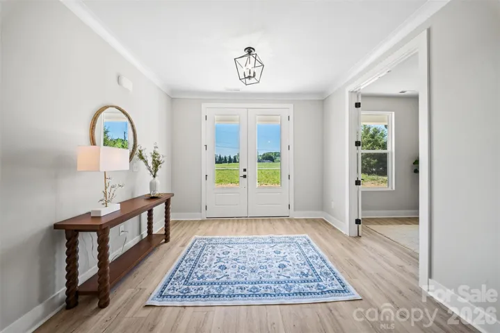 You will love the durable luxury vinyl plank flooring throughout the home, offering both style and functionality. The electric fireplace with shiplap surround anchors the inviting living room for cozy nights in or gathering with guests. A dedicated office/flex space with french doors adds versatility to the open floor plan - ideal for working from home, a kid's space or a quiet retreat.