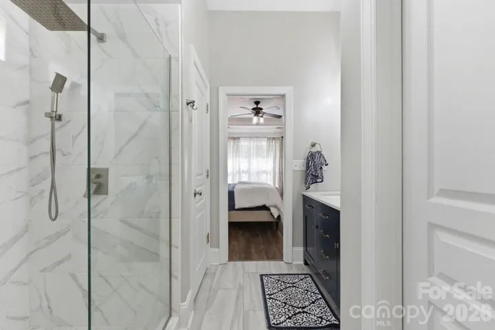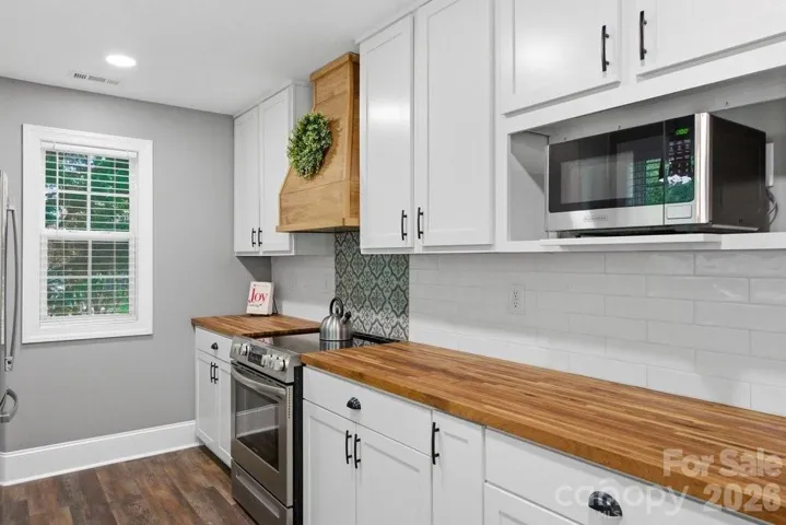 Tucked away at the end of a quiet cul-de-sac, this inviting 3-bedroom home with a versatile bonus room + loft offers the unique ability to walk or bike to Historic Downtown Waxhaw's local shops, restaurants, parks, and community events, while coming home to a wooded, private lot that delivers on the promise of retreat. The two-story living room anchors the main floor with an open, light-filled feel, complemented by updated flooring throughout. The kitchen has been thoughtfully reimagined with new cabinetry, stainless steel appliances, and a dual-surface design featuring butcher block and black granite countertops — both beautiful and highly functional. The main-floor primary suite includes a fully renovated bathroom with a spacious shower and walk-in closet. Upstairs, two additional bedrooms, a versatile loft, and a bonus room provide flexibility to be used as an additional bedroom, home office, or a secondary living space. The backyard is fully fenced, flat, and backs to mature trees for added privacy. A large deck and flagstone firepit create an exceptional outdoor living space with room for entertaining, gardening, and play. With a generous lot, thoughtful updates throughout, and a location that blends walkability with a sense of retreat, this home offers a unique opportunity in one the area's most beloved downtowns!
