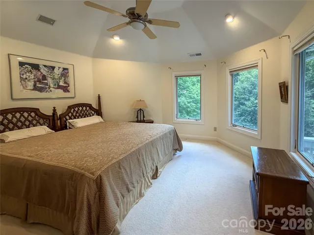 Spectacular home in Rumbling Bald Resort offered with a second neighboring lot +/- 3 acre property. Prime spot close to the club , on the second cove, across from lakefront lots. This magnificent home has a large owner’s suite on the main level, two en-suite bedrooms upstairs, and two more bedrooms with a half kitchen, family room and covered terrace downstairs. PLENTY of great living space for everyone to enjoy the gorgeous, private gated lakefront club setting. Rumbling Bald offers property owners a care-free self contained resort lifestyle on beautiful Lake Lure. Every resort amenity is here: championship golf courses, pools, sandy beach, on site restaurants and spa (indoor year round pool), kids activities and camps, and of course, boating on the lake - from your own dock or boathouse, or from the club marina. The town of Lake Lure has its own fantastic outdoor activities, restaurants and beach. Convenient to Asheville, Hendersonville, Charlotte, and Greenville. Vacation rental infrastructure offered by club management. Gatehouse is staffed 24/7. This spectacular home can accommodate up to 12 people. Spacious main level owners suite with a private office. Open living area has beautiful sunny views to mountains and plenty of gathering areas in the open living, dining, kitchen, breakfast and bar areas which also open to a large covered terrace. Upper level has second and third bedrooms, both with en-suite baths. Lower level has fourth and fifth bedrooms, playroom, and kitchen with walk out to back covered patio and yard. Attached 2 car garage with EV chargers. New roof, solar energy system, mature landscaping, waterfall pond, and fenced dog yard. The home is on 1.55 acre lot, and is offered with the adjacent (buildable) 1.4 acre lot providing opportunities for a second home or just an expansive property on 2.95 acres total. Buyers to confirm resort fees. Sellers of this property also offering 2 lakefront lots located across the road from this house - please see separate listing ML#. Those two lakefront lots comprise +/- 2 acres with a good potential build site, an access easement and path down to nice recently built boat dock on one of Rumbling Bald’s only quiet coves. Important note - the photos of these lakefront lots are included with the photos of this property only to show where the home is located relative to other lots and the lake. The lakefront lots are to be sold separately but could pair fabulously with the home to create a 5+ acre package.