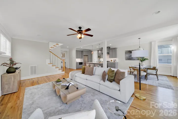 Perfectly positioned in the heart of Sedgefield, this thoughtfully designed home offers the ideal blend of modern comfort and unbeatable location. From the moment you step inside, you are welcomed by an open, light-filled layout that seamlessly connects the main living spaces, creating an inviting atmosphere for both everyday living and entertaining. The kitchen is a true centerpiece, featuring quartz countertops, designer finishes, a 5-burner gas cooktop, and a spacious walk-in pantry, all opening to the dining and living areas with a cozy fireplace. Upstairs, you will find three generously sized bedrooms, including a spacious primary suite complete with a trey ceiling, spa-inspired bath with frameless shower, soaking tub, dual vanities, and a large walk-in closet. A main-level bedroom with French doors offers flexibility as a private office or guest retreat. Step outside to enjoy a flat, fenced backyard with an expanded porch, perfect for relaxing or hosting surrounded by beautifully maturing landscaping.The location truly elevates this home, with close proximity to South End, where you can enjoy some of Charlotte’s best dining, shopping, breweries, and entertainment. The Light Rail, Harris Teeter, and everyday conveniences are just minutes away, along with quick access to Uptown Charlotte and major roadways, making both commuting and enjoying the city effortless.