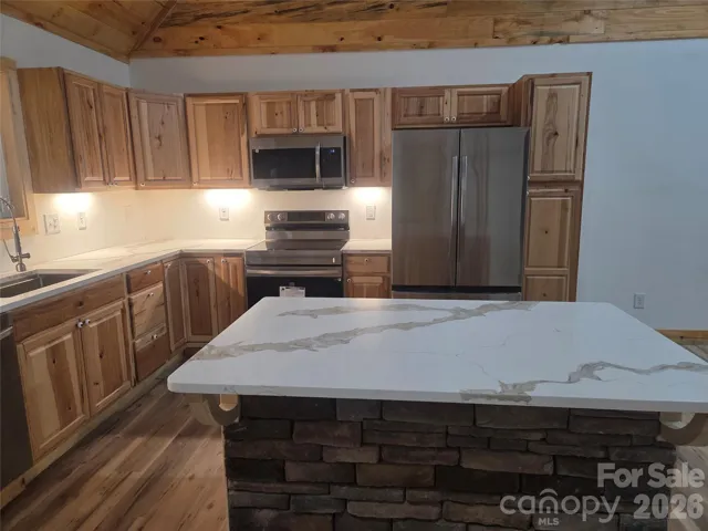 New custom built log cabin style farmhouse by Roberts Custom Homes. The large front and back porches, the gas fireplace, and a vaulted tongue and groove ceiling over the great room are just some of the features that make this place special. A short walk to the neighborhoods private access to High Rock Lake (Pavillion with shelter house, fishing and small boat landing); less than 1 mile to public boat access and swimming area (Buddle Creek) and Holloway Church Road; and less than 3 miles to the new sports complex site and Southmont school. New appliances, smart house capable, tile bath and shower, privacy fence in back, chain link fence around property, peaceful, family friendly neighborhood, largely wooded surroundings. Good walking and biking neighborhood, good for birding, too.
