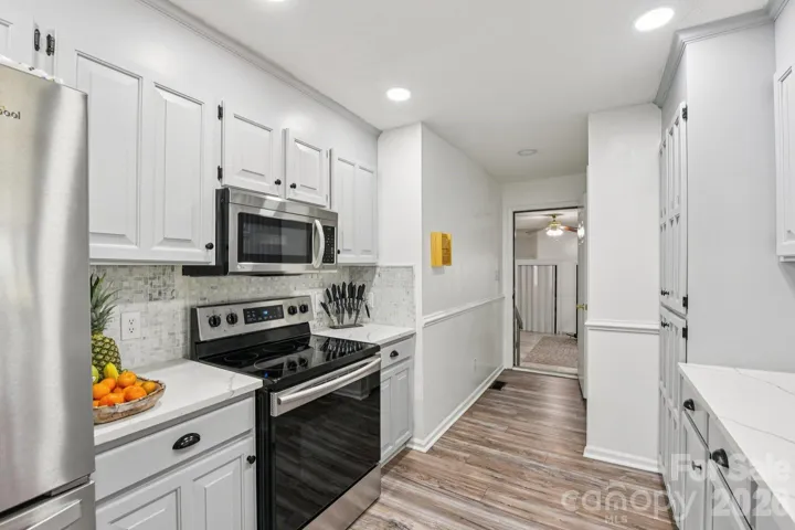 The updated kitchen shines with quartz countertops, stainless steel appliances and new cabinets making it both stylish and functional. Step outside to a huge covered patio—ideal for relaxing or entertaining while enjoying the serene outdoor setting.