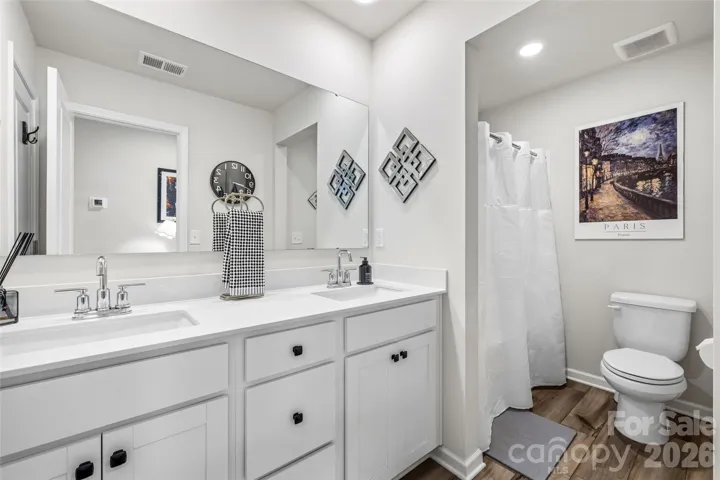 Welcome to one of the most desirable homes in the brand-new Walkers Mill community! Situated on one of the largest lots in the neighborhood, this property boasts a huge, flat backyard—perfect for entertaining, play, or simply enjoying the outdoors. The popular Hughes floor plan offers tall ceilings and a thoughtfully designed open-concept layout, where the expansive family room flows seamlessly into a chef-inspired kitchen and bright breakfast nook—ideal for both everyday living and hosting guests. The stunning all-white kitchen features quartz countertops, a large island with seating for four, a classic subway tile backsplash, gas oven, and a spacious walk-in pantry—combining style and function beautifully. The main level features a private bedroom with a full bath—ideal for guests or multi-generational living—while also offering the flexibility to serve as a home office, den, or additional flex space. Upstairs, you’ll find all four additional bedrooms and a versatile loft that can be customized to fit your lifestyle. The sprawling owner’s suite serves as a true retreat, complete with a spa-like bathroom and a generous walk-in closet. Enjoy the neighborhood amenities that include a large outdoor pool with cabana and scenic sidewalks throughout the community—perfect for relaxing or staying active. This home combines modern comfort, functional design, and exceptional outdoor space—don’t miss your opportunity to make it yours!