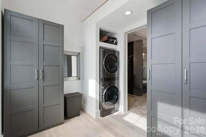 Crafted by Cottonwood Custom Home Builder, this extraordinary modern luxury residence blends architectural sophistication with cutting-edge functionality, offering nearly 5,000 square feet under roof—including expansive living areas, garage, bonus space, and beautifully designed covered porches. Step inside to a striking living area defined by 14-foot ceilings, reverse shadow box trim, a dramatic exotic tile fireplace, and a seamless 16-foot sliding glass door that opens to the outdoor retreat. The floating wood flooring and integrated MartinLogan speaker system create an elevated atmosphere ideal for both everyday living and entertaining. The chef’s kitchen is a true showpiece, anchored by a leathered granite island and surrounded by sleek quartz countertops. Designed for both performance and style, it features dual sinks, a beverage fridge, premium Kucht appliances, a Liebherr refrigerator, a 48” range with double ovens, convection microwave, dishwasher, roll-out storage, reverse osmosis water system, and a convenient passthrough window. Full tile walls along the serving areas add a modern, polished finish. A separate scullery enhances functionality with its own sink, dishwasher, stone surfaces, built-in shelving, slate flooring, and additional storage. The primary suite is a private sanctuary with 11-foot ceilings, serene pool views, and direct outdoor access. Thoughtful details include a wood-accent feature wall, built-in night lighting, and wiring for remote shades. The spa-inspired bathroom boasts heated travertine floors, dual vanities, a designer soaking tub, and a Delta rain and handheld shower system, along with custom storage and a dedicated washer/dryer connection. Every bedroom is designed for comfort and privacy, each featuring an ensuite bath with a walk-in shower. The home also includes two laundry areas—one in the primary suite and another in the hall with a utility sink. Outdoors, a resort-style oasis awaits. The saltwater pool is highlighted by limestone coping, ambient lighting, a bubbler feature, auto-fill system, and pre-plumbing for heating. The surrounding space includes artificial turf, an 8-inch slate retaining wall, and extensive drainage design. Entertain effortlessly with the covered outdoor kitchen, complete with a 4-burner stove, Mont Alpi grill, mini fridge, stainless sink, dual TV hookups, and a natural gas limestone fireplace. Covered porches with fans, lighting, and rich wood detailing extend the living space year-round. This home is a rare build combination of craftsmanship, luxury, and modern convenience—designed to impress at every turn.