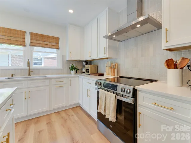 You found it! This stunning home is so perfectly remodeled and ready for new owners. It was lovingly restored and updated to the picture perfect cottage. Highlights include the immaculate kitchen, refinished floors, updated bathrooms and so much more. The large living room features a huge picture window and wood burning fireplace and lets in lots of morning light! The dining room is oversized and great for entertaining as it leads to the kitchen and the large patio that overlooks the gorgeous flat yard. The cook's kitchen is sure to impress with newer cabinets, fixtures and stainless steel appliances. Highlights here include soft close drawers, a large island with room for stools and a built in pantry. Through the decorative arch you will find the mudroom and laundry room with ample storage! Down the hallway are the two guest bedrooms that have great windows and large closets. They share a fully renovated bathroom with designer fixtures and a tub/shower combo. The primary suite is a show stopper complete with double closets and lots of windows to filter in the afternoon light. The updated bath also has been curated for charm and features a great walk in shower. The backyard is a perfect place for a dog to run around or to have friends around the fire pit. Check out the modern style fence and shed for storage! All of this and so much more just minutes to anything you could need. Kilborne Park is almost across the street and a great urban oasis. The new Eastway Rec center is less than 10 minutes by car. Close proximity to Independence, Uptown and so many great restaurants all just minutes away. Be in Midwood in 7 minutes! If you want to live close to it all but have some privacy in a gorgeous home, this is it! The fireplace and shed sold as-is, no known issues. Check out the virtual tour. This home was renovated to live in (not flip) and you can see the difference! Unknown if permits were required for renovations. All work was done under the owner's father who is a licensed GC out of state.