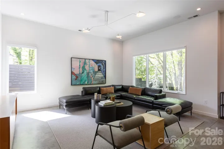 Striking modern residence located in Charlotte’s vibrant NoDa Artist District. Constructed in 2023 by renowned builder Peter Vasseur Homes and thoughtfully designed by Woodruff Architecture, this one-of-a-kind home was curated with design and art in mind, offering a sophisticated backdrop to showcase both everyday living and statement pieces.