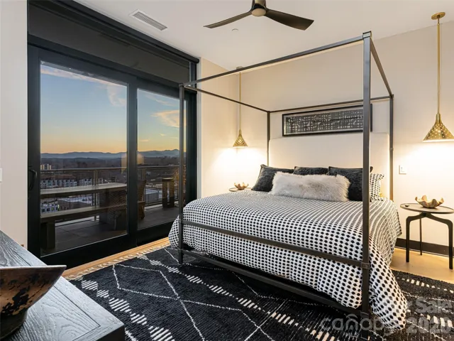 Luxury FURNISHED (ALL FURNISHINGS INCLUDED) Penthouse two bedroom, plus Bunk Room that sleeps 2, two full baths located in downtown Asheville's South Slope area offering stunning long-range Blue Ridge Mountain views and city lights at night. Penthouse was designed and furnished by a local Asheville Interior Designer. SHORT TERM RENTALS PERMITTED. Extended Great Room combined with 15 ft. ceilings creates a spacious area to relax and entertain while overlooking the Blue Ridge Mountains. Two spacious balconies with high-end furnishings and decor. Two bedrooms with an additional "bunk room" offering additional sleeping quarters. Furnished with a contemporary flair in neutral colors, this condo is in walking distance to downtown restaurants, galleries and breweries. Secured garage parking for 2 cars with keypad entry. Two storage units.