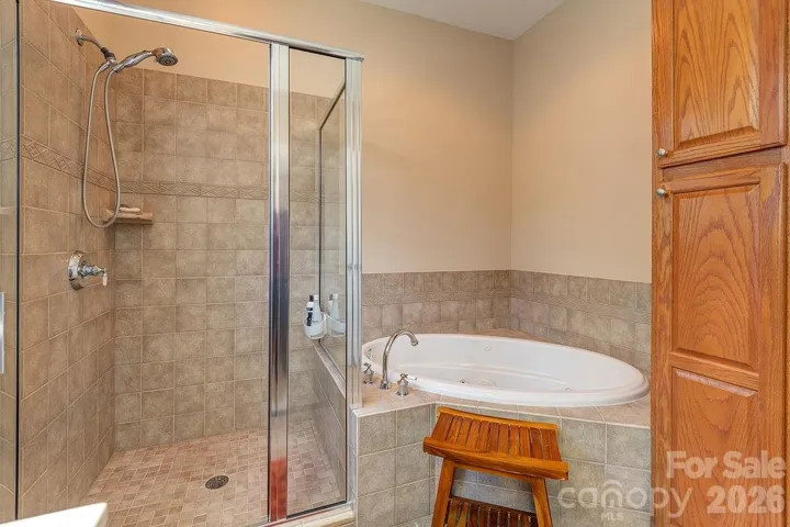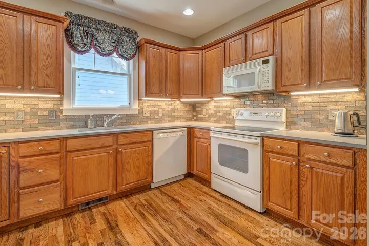 Welcome to Eastwood Village! Tucked into one of East Asheville's most charming neighborhoods, this lovely, well-maintained home offers the perfect blend of comfort, style, and convenience. Inside, the home features a bright, welcoming layout with excellent flow, ideal for both everyday living and entertaining. Vaulted ceilings create an airy, open feel, while rich hardwood floors add warmth and character throughout the main living spaces. The thoughtfully designed kitchen features sleek quartz countertops, and each and every window is treated to fine Hunter Douglas blinds and custom drapery. The main-level primary suite provides a tranquil retreat, complete with a spacious ensuite bath with a jetted tub for ultimate relaxation. Step outside to enjoy mature landscaping that adds privacy and seasonal beauty, perfect for your morning cup of coffee and entertaining dinner guests. Just minutes from everyday essentials like groceries and dining, as well as vibrant downtown Asheville and the scenic Blue Ridge Parkway, you’ll enjoy both accessibility and a peaceful setting in this beautiful East Asheville home.
