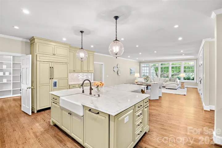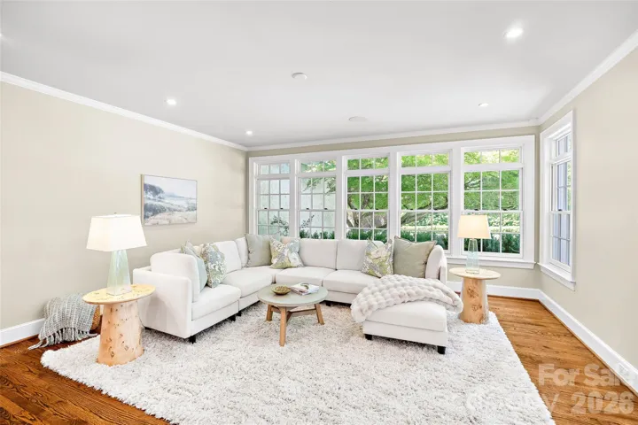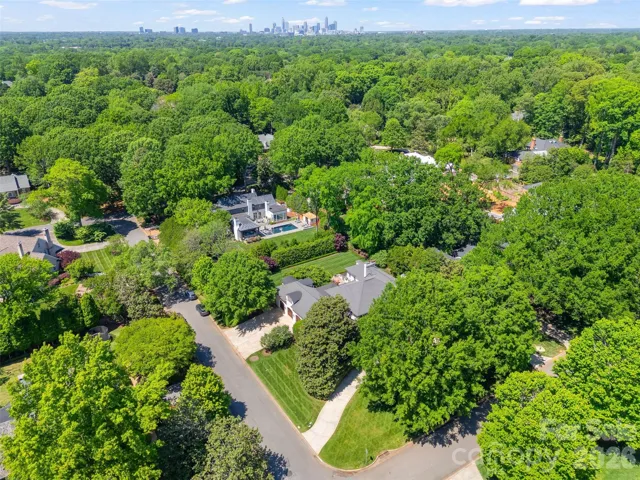 Nestled on a beautifully level, .72-acre homesite in one of Charlotte's most coveted neighborhoods, this exceptional full-brick residence offers an effortless blend of timeless elegance and modern luxury. Boasting 5 bedrooms, 5 full baths, and 2 half baths, the home is thoughtfully designed for both grand-scale entertaining and comfortable everyday living. This property is a true outdoor oasis featuring a fully enclosed backyard and lush landscaping for unparalleled privacy. Enjoy a covered back terrace and lower-level patio with outdoor kitchen, play area, and gardens! A very rare opportunity with endless expansion potential on one of the finest lots and locations in the neighborhood - a compelling offering not to be missed.