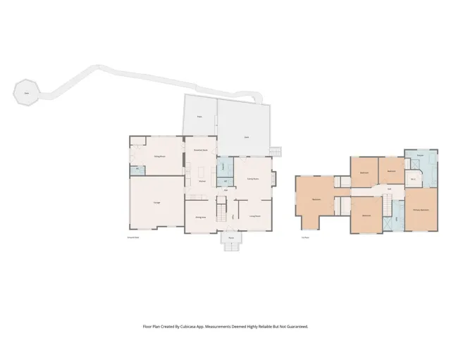 Upstairs, the primary suite provides a peaceful retreat with a spacious walk-in closet and private ensuite bath. Four additional bedrooms line the wide upper hallway, offering flexibility for guest accommodations, home offices, or multi-generational living.