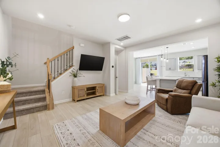 Welcome to this beautifully appointed townhome where comfort, style, and low maintenance living come together effortlessly. The home makes a welcoming first impression from the moment you arrive. Step inside to a thoughtfully designed foyer featuring a built in niche with shelving and an outlet, offering a perfect place for everyday essentials, whether it is a soft glow from a favorite lamp or a convenient spot to keep devices charged and ready as you head out the door. From there, the home opens into a spacious living room that feels both inviting and connected, flowing seamlessly into the kitchen and dining area, an ideal setting for everything from quiet evenings to gathering with friends and family. At the heart of the home, the kitchen is as beautiful as it is functional. Modern gray craftsman style cabinetry, quartz countertops, and a timeless subway tile backsplash set the tone. While the large center island with pendant lighting invites conversation, casual meals, and lingering moments. The sink overlooks the rear yard, offering a peaceful backdrop to your daily routine. Just off the kitchen, the dining area, anchored by a lovely accent wall, opens to the extended patio with privacy screens on each side. Backing to a common area, the outdoor space feels open and expansive, like a natural extension of your home, perfect for morning coffee, evening unwinding, or weekend get togethers. Upstairs, the primary suite offers a true retreat, overlooking the serene rear yard and designed for rest and relaxation. The ensuite bath features a double vanity, upgraded tile flooring, and an expanded tiled shower with a bench seat and transom window that brings in soft, natural light. A spacious walk in closet completes the suite. Two additional bedrooms provide flexibility for guests, work from home needs, or growing households, while the hall bath with double vanity and the conveniently located upstairs laundry room make daily living that much easier. Thoughtful touches like a walk-in linen closet and upgraded open stair railing enhance both function and the light, airy feel throughout. The attached one car garage is a flexible space currently used as a home gym, ready to adapt to your lifestyle. This townhome is ideally located just moments from Lake Wylie, McDowell Nature Preserve, and Rivergate Shopping Center so get ready to enjoy easy access to outdoor recreation, dining, and everyday conveniences. Move right in and start enjoying a carefree lifestyle just in time for summer.