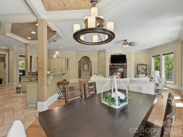 The main level is designed for both everyday living and entertaining, featuring a granite kitchen that opens seamlessly to the expansive great room, along with formal living and dining spaces. Architectural details and custom ornamentation throughout the home add a refined, upscale feel while maintaining warmth and livability.