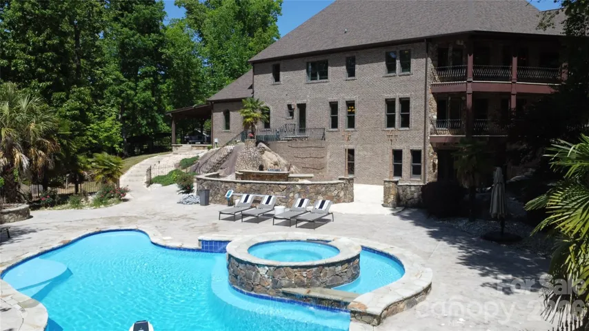Outdoor living is exceptional and truly sets this property apart. A multi-level deck overlooks the natural landscape, while the expansive patio—crafted from massive, natural stone—creates a one-of-a-kind outdoor gathering space. The gunite inground pool has been recently enhanced with new variable frequency drive (VFD) systems for improved efficiency and long-term cost savings. A tranquil seasonal creek runs through the backyard, further enhancing the peaceful, private setting.