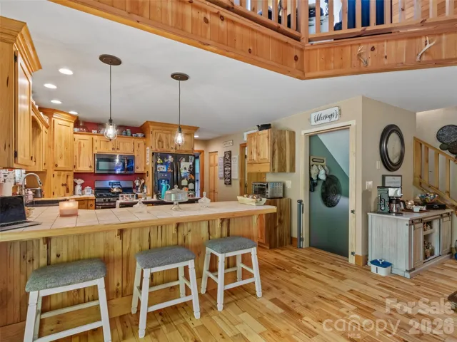 Seated on nearly 8 acres in the heart of the Blue Ridge mountains in Bakersville NC just outside of Spruce Pine, this property offers some compelling reasons to take a closer look. There is just over 2000 sq ft of living space, with a bed and bath, and flex area/ game room/ man cave in the basement, master suite on the main level, two story ceiling in the dining room, and an attractive loft area. Two porches off the master bedroom and the main living offer a view of the foothills below Roan Mountain. With attractive stone landscaping, board and batten siding, hardwood floors, and hickory cabinets, this home is a true mountain cabin retreat. A garage shop near the house offers a great spot for a workshop, storage, hobbies and more. A home inspection and survey are in hand.