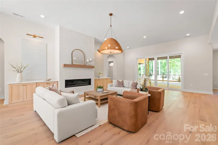 Welcome to this beautifully crafted ranch home, that offers modern design, space, and a scenic view of the pond, situated on three acres in the heart if Waxhaw! Inside, you’ll find 3 bedrooms plus a dedicated office, an open-concept layout, and a bright living area. The kitchen features custom cabinetry, quartz countertops, and a large island—perfect for everyday living and entertaining. Whole-house water filtration system providing clean, filtered water throughout the home—improving taste, reducing contaminants, and helping protect plumbing and appliances. Spacious laundry room with custom shelving, ample counter space for folding, and room for organization—designed to be both functional and efficient for everyday use. The primary suite features a spacious layout, a spa-like bathroom with dual vanities and designer finishes, and private access to its own balcony—perfect for enjoying quiet mornings or unwinding while overlooking your land and pond! Enjoy the outdoors from the covered back porch with a wood-paneled ceiling, creating a seamless indoor-outdoor living experience. Encapsulated crawl space with dehumidifier—sealed and conditioned to control moisture, improve indoor air quality, enhance energy efficiency. Gated front entrance with keypad and remote access for added privacy and convenience. Located minutes from shopping, dining and top-rated schools!