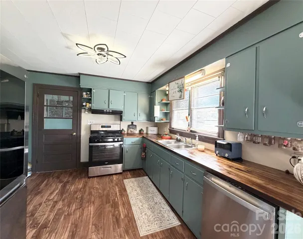 Inside the main house, enjoy many updates! Plumbing, Lighting and Electrical updates, Additional Insulation, Refinished Hardwood Floors, Remodeled Main Bathroom, Additional Half Bathroom, Open Floor Plan, and Much More! An Updated Kitchen is conveniently located off of the garage and has Painted Cabinetry, Newer Appliances, Beautiful Wood Counter tops, and is open to the Dining and Living Room! Hardwood floors lead to a Large Living Room with a Secret Bookshelf Passage to a Nicely Sized Bedroom and Adjoining Half Bathroom! 2 Additional Bedrooms on this level. A Fully Remodeled Main Bathroom will Catch Your Eye with Bead board walls, Tile Floor and Brass Finishings! Glorified Crawl Space, feels much more like a Full Basement!