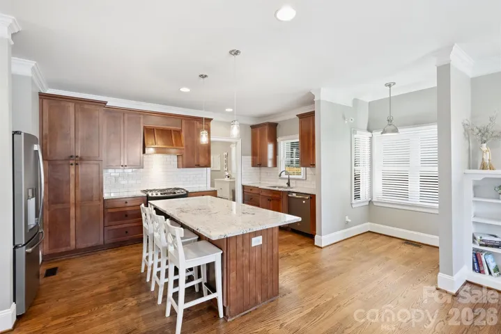 Set in one of the most connected pockets of the neighborhood, you’re moments from some of Charlotte’s favorite restaurants, breweries, coffee shops, and everyday conveniences, with easy access to NoDa, Plaza Midwood, and Uptown. Inside, recent improvements create a fresh, move-in ready feel, including a full interior and exterior refresh, refinished hardwood floors, and a new gas hot water heater. Major system updates, including HVAC replacements and crawl space encapsulation with dehumidifier, provide added confidence for the next owner. The layout offers seamless flow between the living area and kitchen, ideal for everyday living and entertaining, along with a built-in bar in the dining room that adds both function and character.
