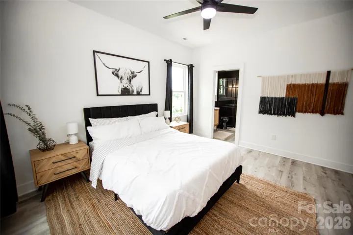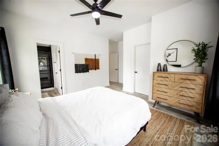Here’s your chance to own a like-new home in thriving Revolution Park! Located just minutes from South End & Uptown, enjoy exceptional convenience to some of Charlotte’s best dining, entertainment, and employment hubs. Built only a few years ago and meticulously maintained, this modern residence blends luxury, functionality, and an unbeatable location. The light-filled open concept design is an entertainer’s dream, showcasing timeless contemporary finishes throughout. The stunning kitchen features a gas range, quartz countertops with a large waterfall island, custom hood vent, and a spacious walk-in pantry. A stylish wet bar with beverage cooler seamlessly connects to the living area, where a cozy fireplace creates the perfect place to unwind or gather. The expansive primary suite impresses with a spa-inspired bath, complete with soaking tub, walk-in shower, and generous closet space. Secondary bedrooms are well-sized with ample storage, and each bathroom showcases custom tile work and thoughtful design. Since construction, the current owners have added standout and versatile mixed-use sport court/basketball area, perfect for recreation, fitness, and entertaining. It has also been enhanced with a mini-split system creating a fully conditioned space in the insulated garage making ideal for a gym, workshop, or flex use.