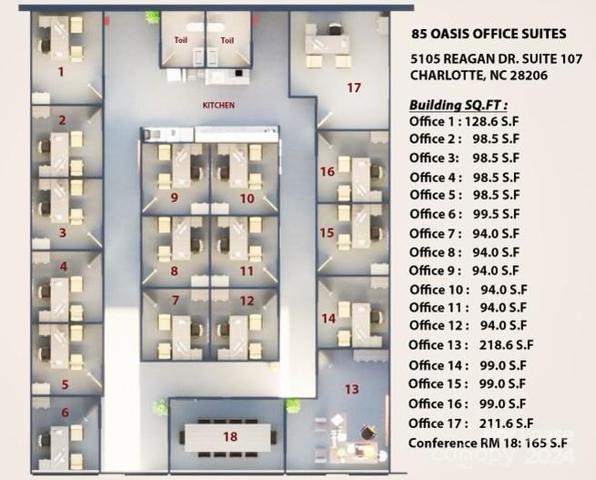 Newly renovated office suites ranging from 94 sq ft to 211 sq ft. Designed with all of the traditional amenities in mind, our spaces will offer reception area, private offices, co-working space, open area for cubicles, conference and break room, also kitchen and on-site management services. Fenced in Located with plenty of parking just off the Sugar Creek Exit, known as the 85 Oasis. Our current lease holders include Real Estate Developers, builders, accountants, non-profits organizations, Attorneys and more. Perfect for the budding entrepreneur or seasoned professional.