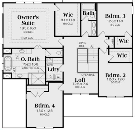 The second floor contains all the bedrooms, with a cozy loft area, laundry room, and linen closet for extra storage space. The principal suite with option for tray ceilings boasts a grand walk-in-closet, and bathroom with vaulted ceilings. Bedrooms two and three also include a walk-in-closet. If you are looking for additional square footage, or perhaps a secondary living quarters, simply finish out the full basement with walkout.